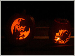 ハロウィーンのもう一つの代名詞はこれ“Jack o' Lantern”(かぼちゃの提灯)。玄関やポーチに飾られます。伝説によると、悪魔を騙していたジャックさんがこのカボチャの提灯に関係しているみたいです。